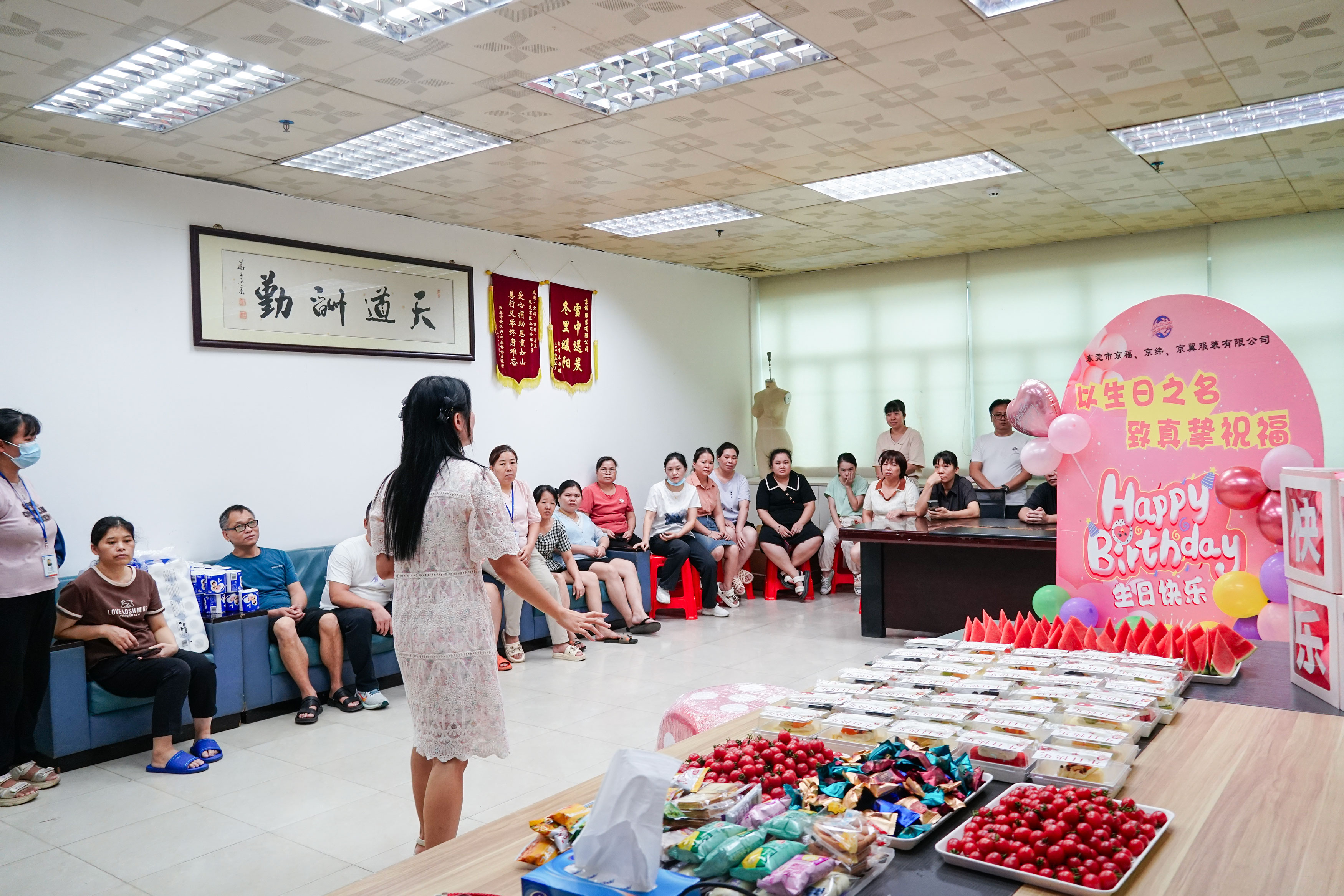歲月見證成長(zhǎng),時(shí)光鐫刻幸福8月,夏意正濃,陽光閃耀2024.8.29我們齊聚一堂慶祝我們生命時(shí)光的起點(diǎn)東莞京福、京緯、京翼服裝有限公司集體生日會(huì)Happy birthday? 現(xiàn)場(chǎng)視頻蛋糕水果零食禮物一年一歲,歲歲冗長(zhǎng)我們用心布置現(xiàn)場(chǎng),精心準(zhǔn)備禮物只