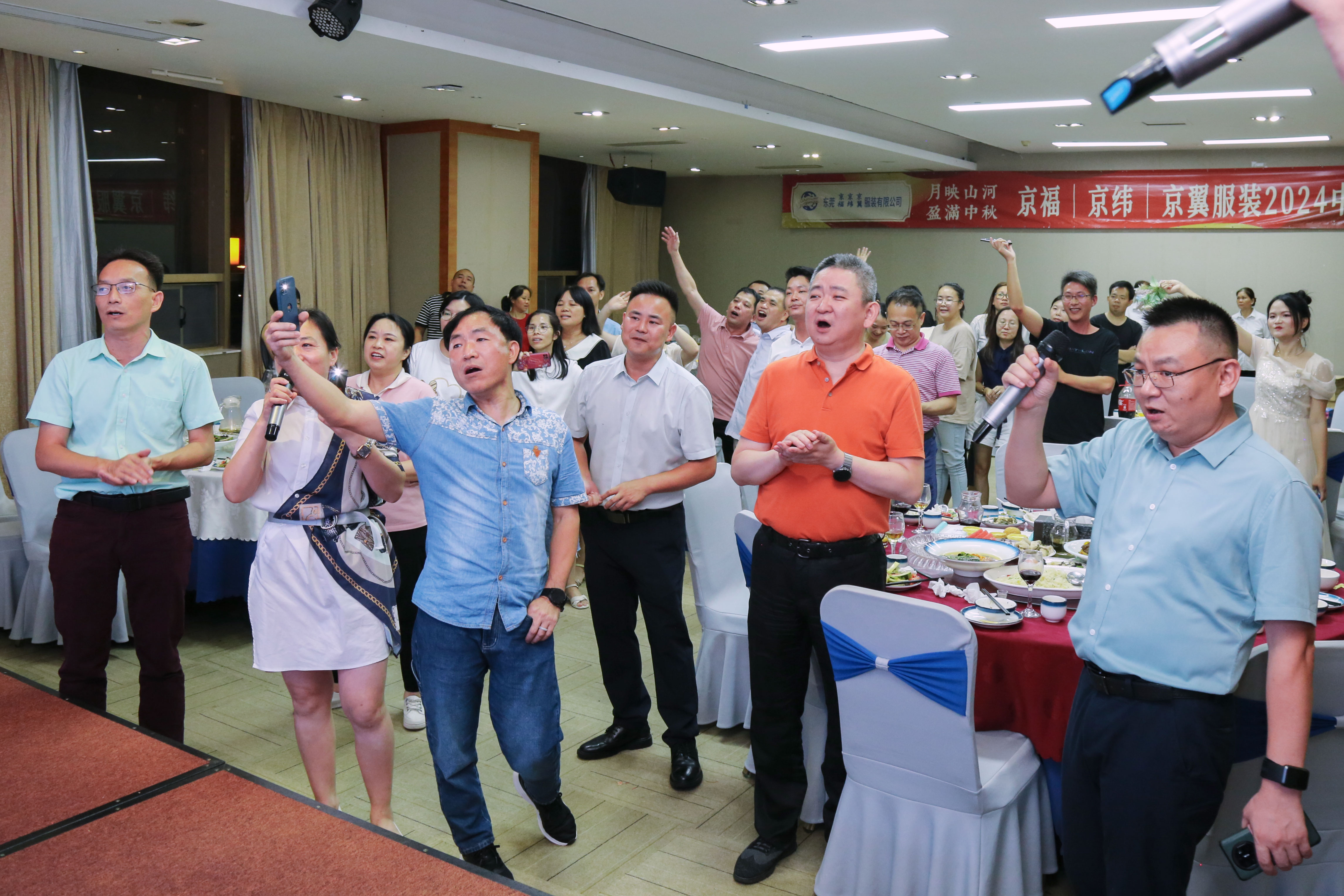 中秋Mid-Autumn月滿中秋情意濃,月映山河合家歡東莞市京福、京緯、京翼服裝有限公司歡聚一堂,共聚月圓美滿中秋佳節(jié)祝福您和您的家人闔家幸福,健康常在花好月圓,閻家歡喜樂享共嬋娟快意同相處秋濃月更圓中華好時(shí)節(jié)晚宴開場(chǎng)前,公司劉董事長(zhǎng)用一首自編的藏頭